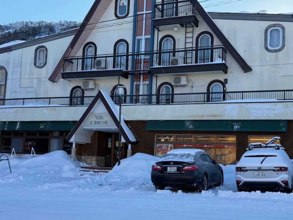 宿として大切にしているのは、ホスピタリティ。初めて訪れる人にも分かりやすく案内し、不慣れな土地でも安心して過ごせるよう配慮しています。エントランスから「くつろぎ」を感じられる設計も、その姿勢の表れです。公式サイトでも、全室Wi-Fi・冷蔵庫・電気ケトル完備、24時間利用できるお風呂、ゲレンデやバス停が目の前という好立地など、滞在のしやすさがしっかり整っていることが分かります。冬季は玄関横にYショップも併設され、長期滞在やワーケーションにも便利です。