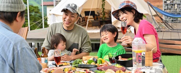 ホテルの歴史を振り返ると、前身となる建物は「ホテルチロル」として使われていた時代もあり、かつてはディスコ化の話があったというユニークなエピソードも。そんな志賀グランドホテルのコンセプトは、「新たな領域にチャレンジするホテル」。象徴的なのが、2022年から始まった志賀高原初のグランピング「ホテキャン」です。客室のすぐそばでテントやBBQ、アウトドア体験が楽しめるスタイルは、ホテルの快適さとキャンプの開放感を“いいとこ取り”した新提案。山に泊まる、ではなく、山で遊びながら泊まる。そんな発想が詰まっています。